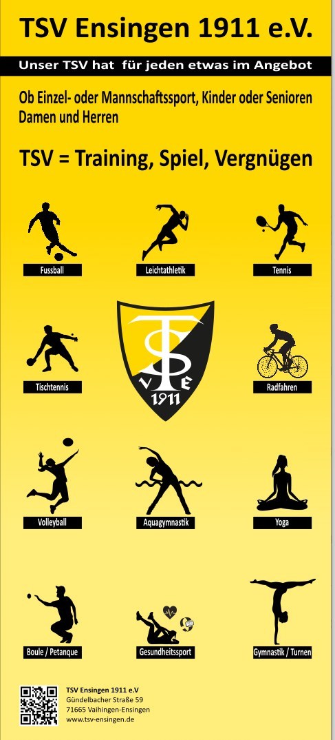 unser neuer Flyer mit den aktuellen Sportangeboten des TSV ist nun fertig. Exemplare sind in der Gemeindeverwaltung, der Forchenwaldhalle und im Vereinsheim ausgelegt. Weitere sind beim Vorstand erhältlich.